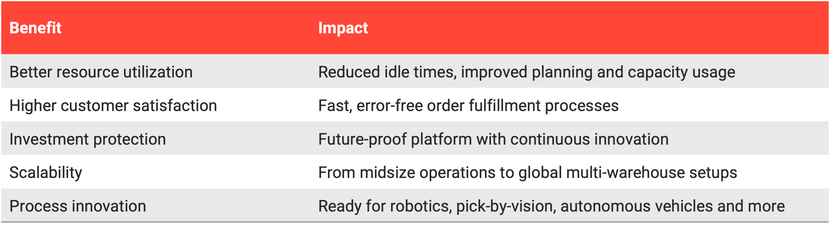 Nowadays companies face a balancing act between efficiency and flexibility. With SAP EWM, they do not have to choose between the two. Key capabilities include: