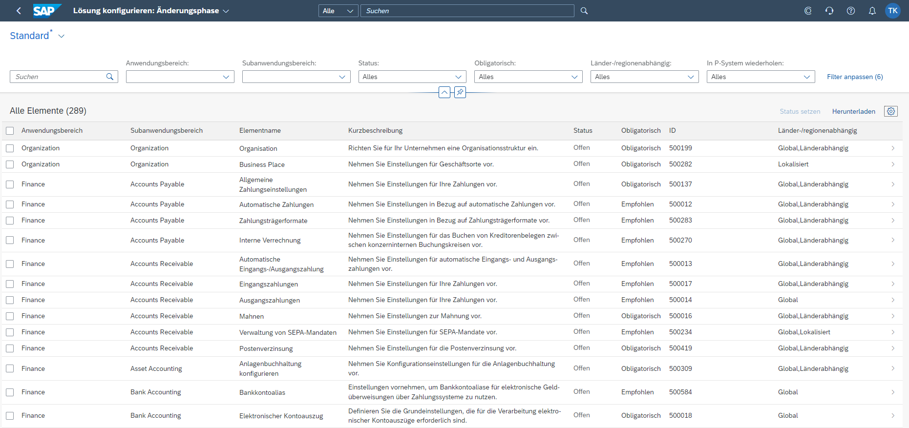 Abbildung 2: Benutzeroberfläche Fiori-App "Lösung konfigurieren" in der SAP S/4HANA Cloud Public Edition