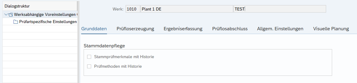Bis hierhin gibt es noch keine allzu großen Unterschiede zu SAP GUI, ausgenommen der angepassten Benutzeroberfläche (Abbildung 4 vs. Abbildung 5). Auch einige Grundeinstellungen in SAP Fiori seitens SAP QM auf Werksebene decken sich mit den Möglichkeiten von SAP GUI. An dieser Stelle kann bei den Grunddaten entschieden werden, ob Stammprüfmerkmale und Prüfmethoden mit oder ohne Historie gepflegt werden. Ebenso sind die Einstellungen für die Prüfloserzeugung und Ergebniserfassung identisch möglich.