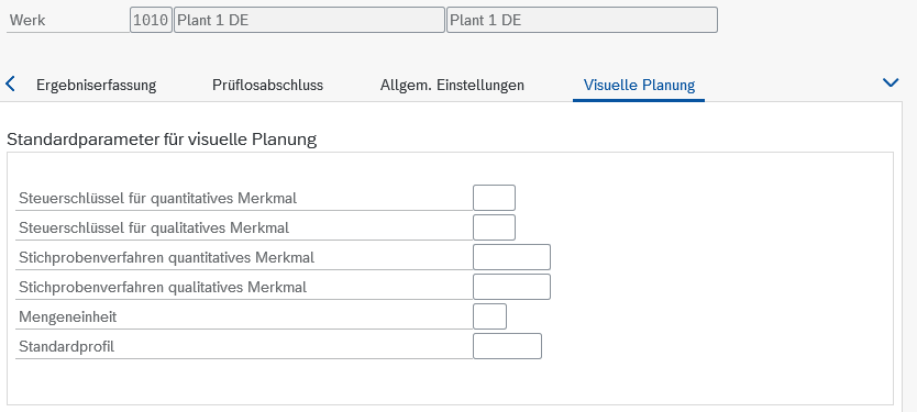 Im SAP Cloud ERP enden die Grundeinstellungen auf Werksebene mit der Ergebniserfassung an dieser Stelle. Das bedeutet aber auch, dass die Bereiche "Prüflosabschluss", "Allgemeine Einstellungen" und "Visuelle Planung" in der Fiori-Welt hier nicht mehr verfügbar sind (Abbildung 6 bis 8). Im Rahmen unseres Projekts sind das keine essenziellen Einstellungen gewesen, dennoch ist zu beachten, dass nicht mehr jede bekannte Customizing-Option in gleicher Form auf Werksebene zur Verfügung steht.